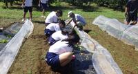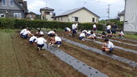 農業ゼミでは、大久保 常治 様にご協力いただき、実際に畑で堆肥の混ぜ込みとマルチ敷きを行いました。