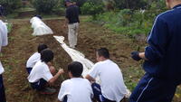 前回に引き続き、大久保 常治 様にご協力いただき、畑の支柱立てやネット張りを行いました。