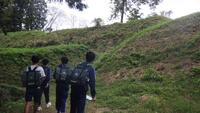 生徒達は、杉山城の長所を自ら見出し、案内板を見たり、当時の様子を思い浮かべるなど、主体的に調査に取り組んでいました。
