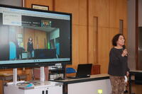 休み時間になると全校生徒はクリエイティ部の作品を見ようと、展示エリアに集まっていました。素敵な光景でした。