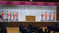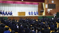男子駅伝部の生徒が全校に決意を表明し、部長会副会長や生徒会会長からエール、校長先生からはお話をいただきました。