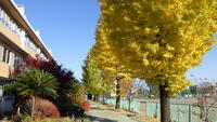 生徒も昼休みなどは、イチョウの木の側でバレーボールやバスケットボールをして遊ぶ姿が見られます。