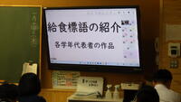 給食委員会の生徒が中心となり、給食メニュークイズや給食標語の紹介などをしてくれました。