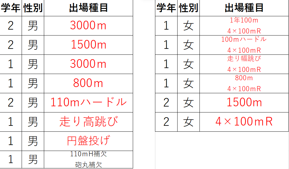 9月18日(木)に熊谷陸上競技場で行われた、令和7年度新人兼県民総合スポーツ大会予選会にて、以下の種目に出場した陸上部の生徒が県大会出場を決めました!