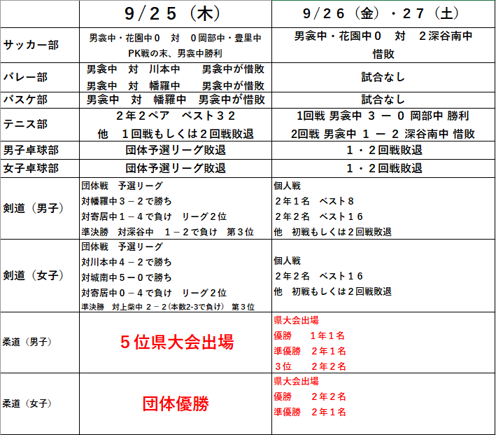 9月25日(木)から9月27日(土)にかけて行われた、新人兼県民総合スポーツ大会地区予選会の結果をお知らせします。